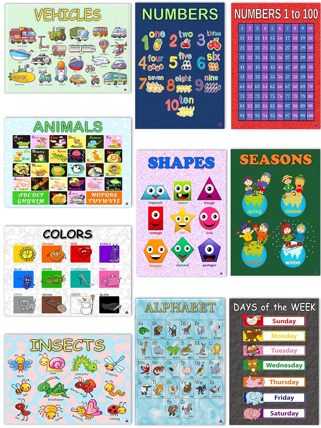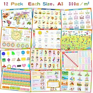 Bememo 9 Pieces Educational Preschool Posters Learning Poster Kit | Download